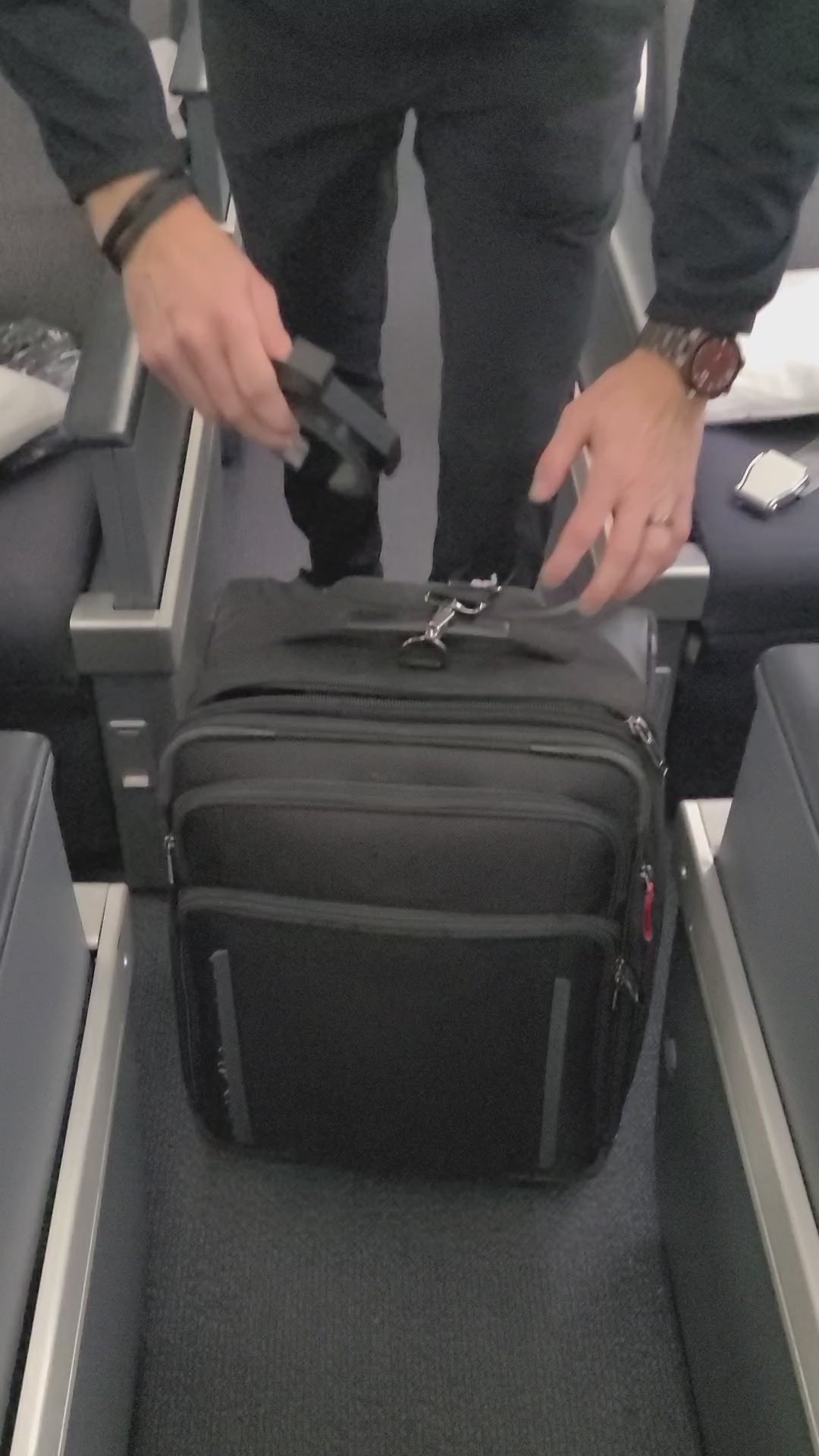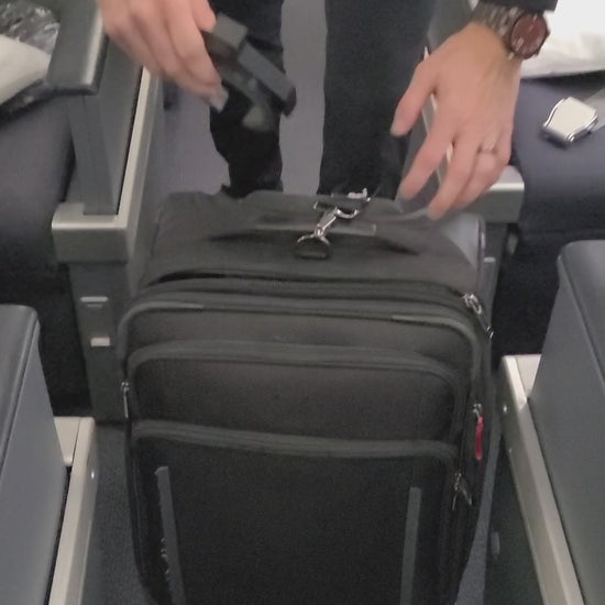 It is quite simple to install and a quick release provides the easy removal of the beverage holder so that the carry on luggage can be easily stored in the overhead bin on an airplane without compromising its maximum required size for a carry on.